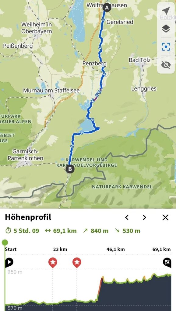 Starten werden wir vom Bhf. Wolfratshausen. Genauen Treffpunkt entnimm bitte der GPX-Daten bzw. siehe im Google Maps Screenshot unten. Treffpunktuhrzeit vor Ort ist 10:30 Uhr. Wir werden bis maximal 10:47 Uhr auf dich warten. 😀